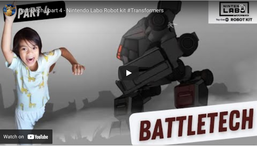 Let’s change things up a bit with a new game: The Nintendo Labo Robot Kit is a cardboard setup you assemble and wear like a backpack and you control a giant robot on the screen.